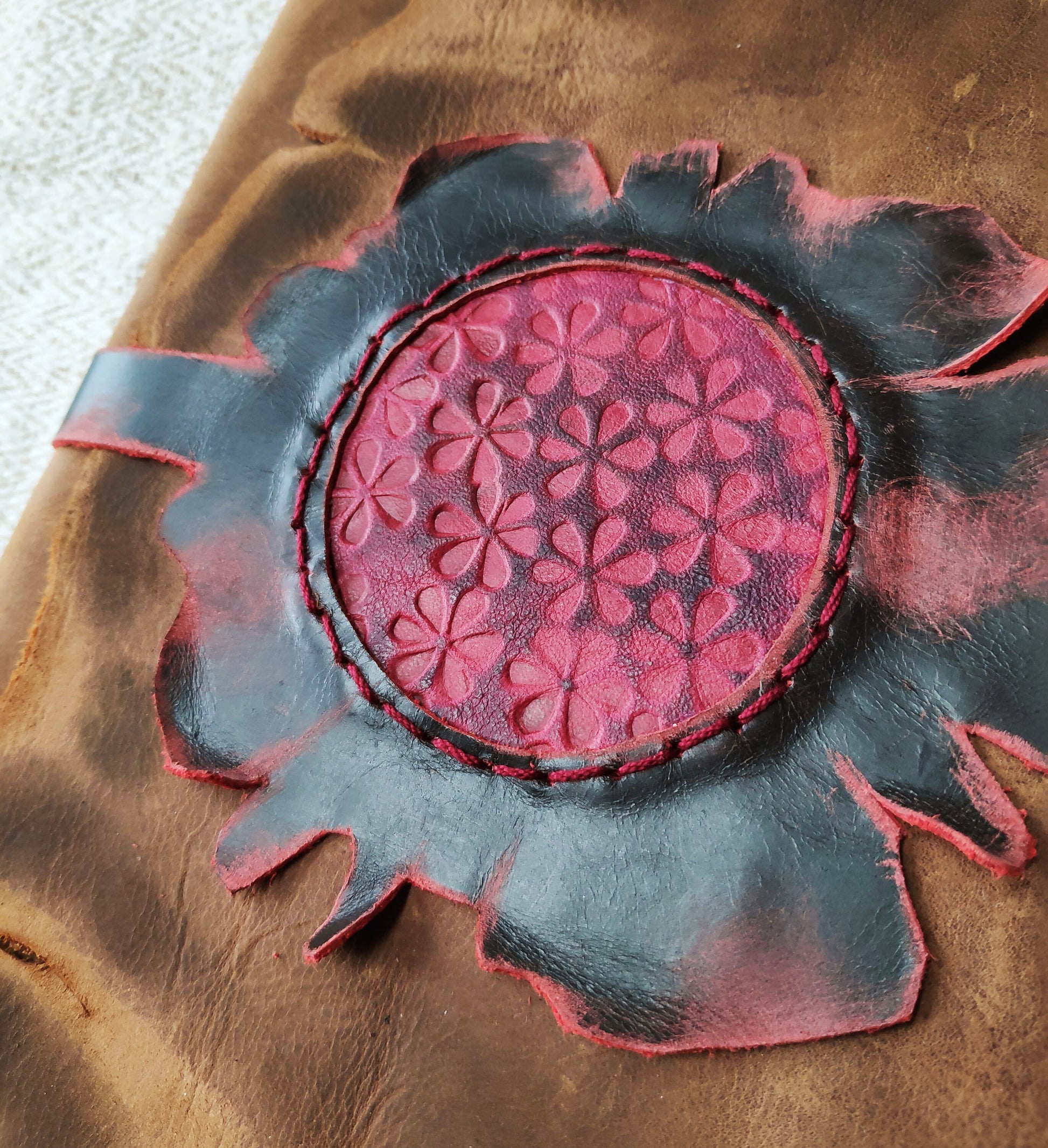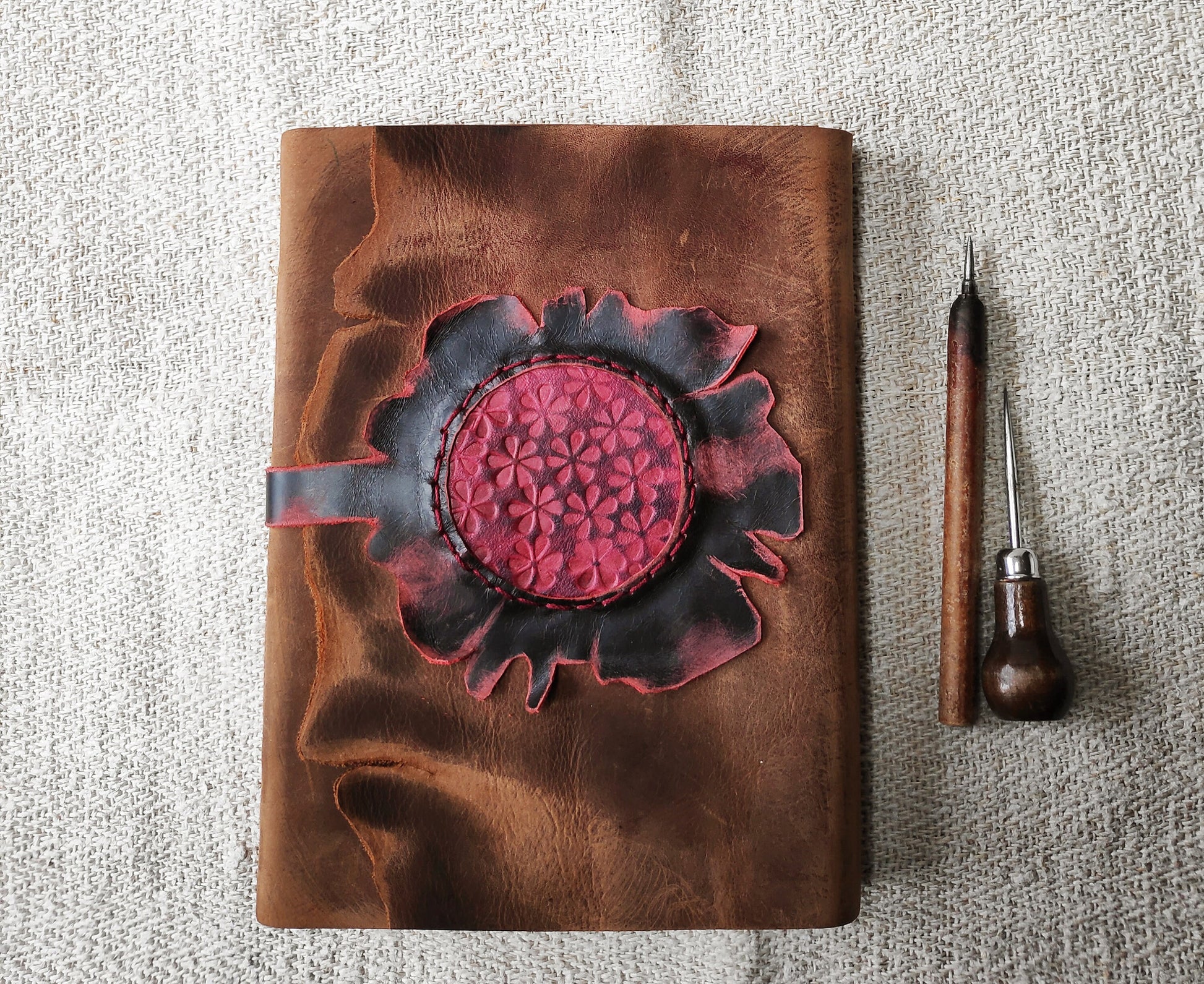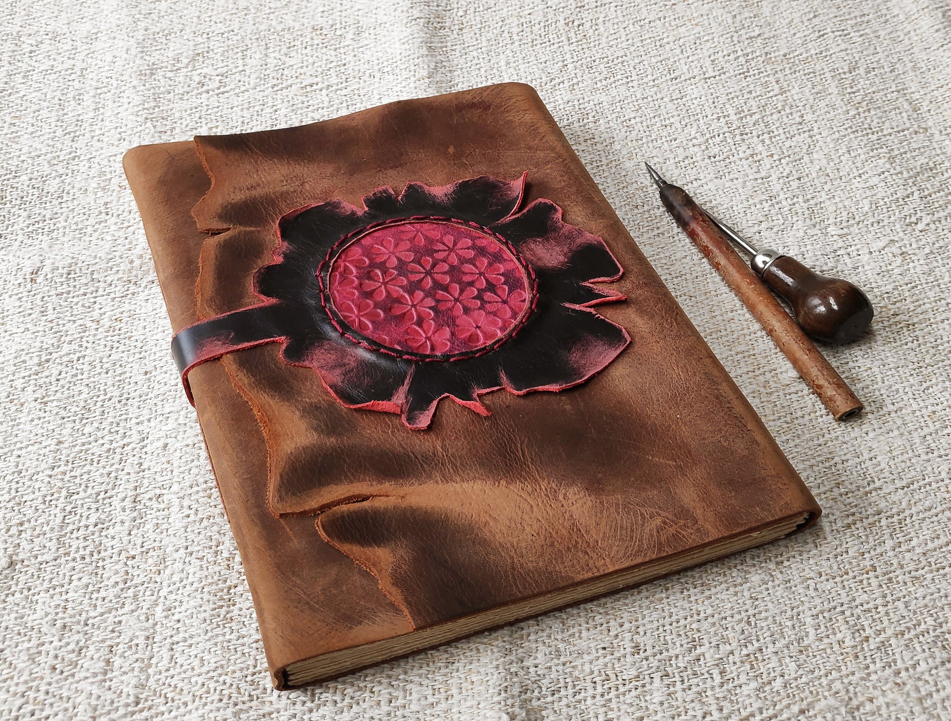 A large rustic handmade journal for you to carry around when you travel. The leather I used for the cover is high quality Italian leather, with an interesting texture. The other side of the leather is left natural and uncovered.
